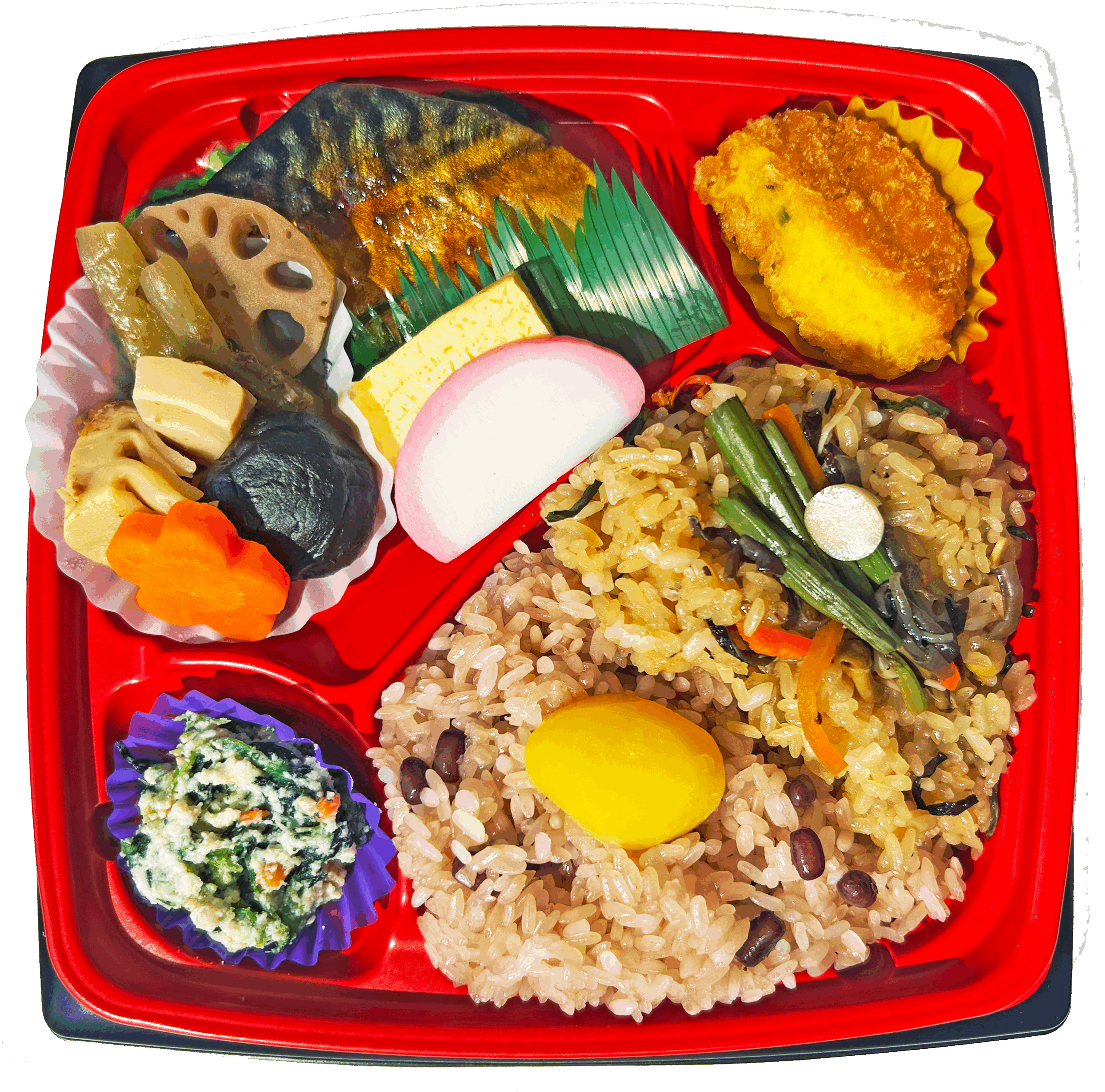 ![]() おこわ御膳弁当 税込2,042円(本体価格1,890円) 一部に卵、小麦、乳成分、えび、大豆、鶏肉、豚肉、さけ、さば、ごま、ゼラチンを含む | ![]() 小手まり弁当 税込670円(本体価格620円) 一部に小麦、卵、大豆、さば、さけ、鶏肉、ごま、アーモンドを含む |