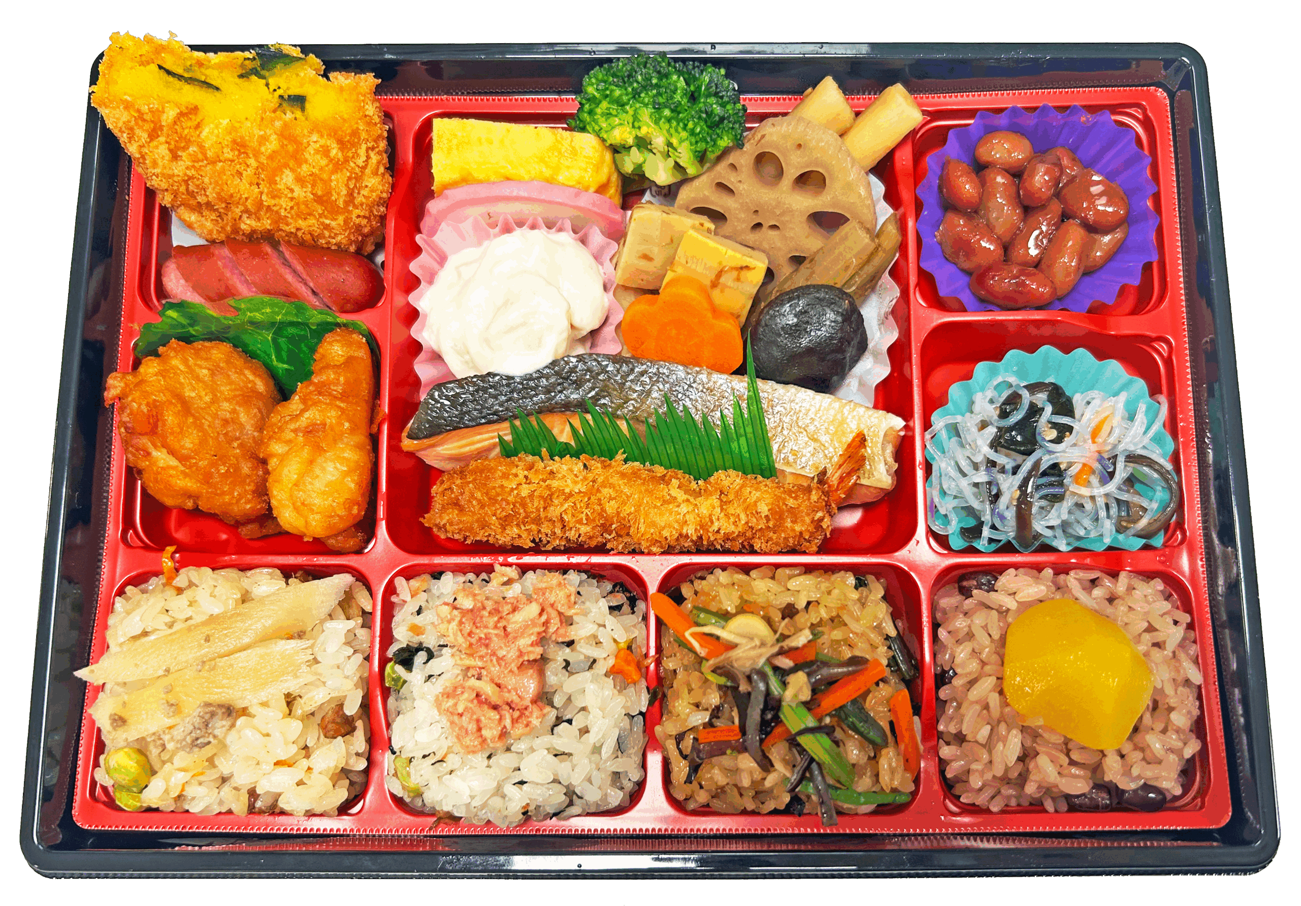 ![]() 四季彩弁当 税込1,350円(本体価格1,250円) 一部に小麦、卵、乳成分、えび、大豆、さば、鶏肉、豚肉、オレンジ、ごま、アーモンドを含む |